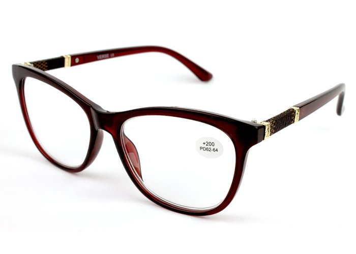 Готовые очки для зрения с диоптриями Verse 1821- идеальная, легкая модель очков для женщин. Форма очков "кошачий глаз" придает взгляду некоторой загадочности. Очки для зрения с диоптриями Verse 1821 выполнены из качественных материалов: оправа из прочного пластика, линзы из прозрачного полимерного пластика, что делает эти очки устойчивыми к случайным падениям. Тонкие заушники не причиняют дискомфорта и подойдут по форме каждой женщине, а декоративная вставка красиво дополняет очки Verse 1821. Очки представлены в 2 цветах: красный, коричневый и черный. Межосевое расстояние 62-64 мм. В подарок к очкам идет футляр.