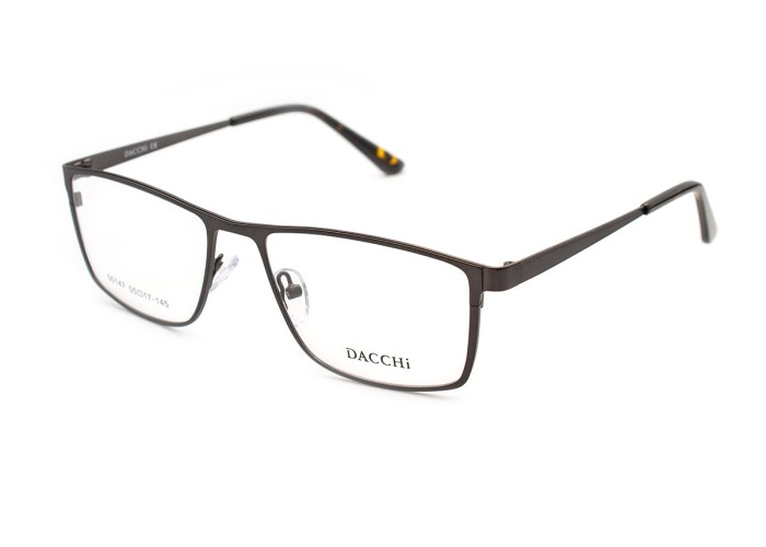 Металлическая оправа для мужских очков Dacchi 50147. Выполнена в современном стиле. Оправа выглядит утонченной и легкой, тем не менее изготовлена по новейшим технологиям и является очень прочной. Дужки на винтах. Для даной оправы в нашем магазине представлен широкий ассортимент линз. Вы сможете с легкостью загрузить свой рецепт очков на сайт или же просто связатся с нашим менеджером для консультации и полного подбора очков. Dacchi 50147 представлена в 3 цветах: черный, коричневый, стальной. Каждый мужчина сможет сделать выбор по своему стилю и предпочтению. Наши специалисты изготовят очки быстро и качественно. В подарок к очкам прилагается футляр.