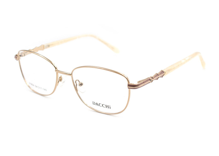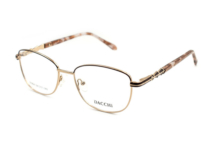 Металлическая женская оправа Dacchi 31954-выглядит аккуратно и современно.  Изготовлена из качественного металла с оригинальным акцентом на дужках.  Легкая и прочная модель с комфортными силиконовыми носоупорами, какая гарантирует долгий срок службы очков и удобство во время ношения. Представлена оправа Dacchi 31954 в нескольких цветах:  золотой с коричневым, золотой, темно золотой и серебряный. Дужки с креплением на флексе. В нашем интернет-магазине Вы сможете подобрать линзы под даную оправу по Вашему рецепту. а наши мастера изготовят очки быстро и качественно. Менеджеры всегда готовы помочь Вам с консультацией. Ждем ваших заказов.