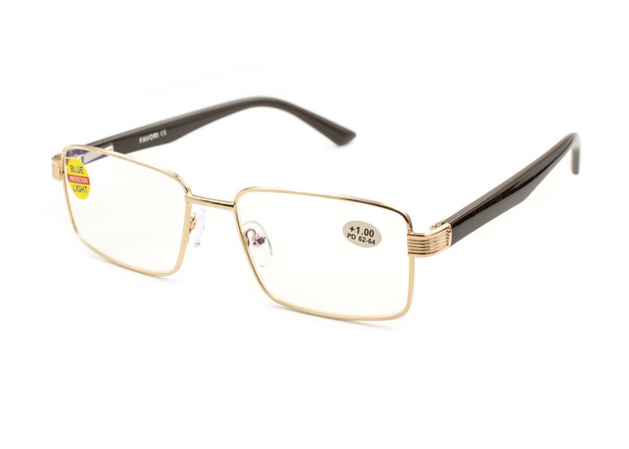 Металлические готовые очки Favori 25714 всегда будут актуальны на рынке готовых мужских очков для зрения. Линзы из полимерного пластика с покрытием blue blocker. Такое покрытие защищает сетчатку глаз от синего спектра цифровых устройств. Качественный материал оправы и крепление заушников на флексах. Удобная посадка с комфортными силиконовыми носоупорами. Благодаря огромному выбору диоптрий абсолютно каждый мужчина сможет подобрать себе очки для зрения. Цвет оправы предусмотрен в 3 вариантах: черный, серебряный и золотой. Диапазон диоптрий (от (+/-) 0.75 до (+/-) 4,00). Межосевое расстояние 62-64 мм. От нашего сайта в подарок к очкам идет футляр и салфетка.