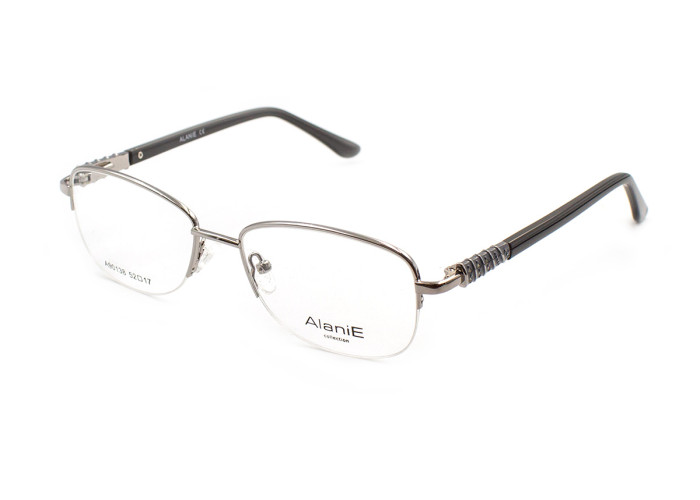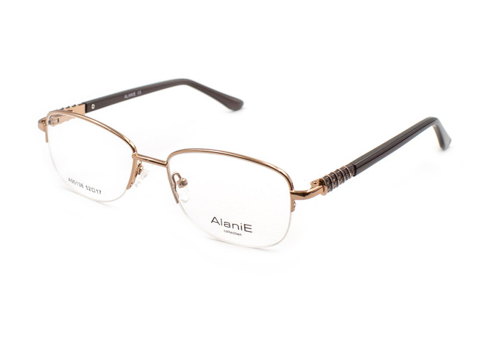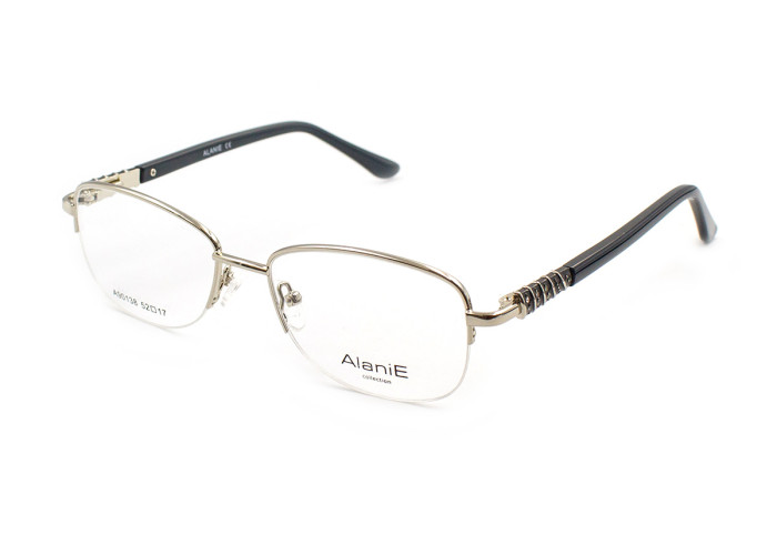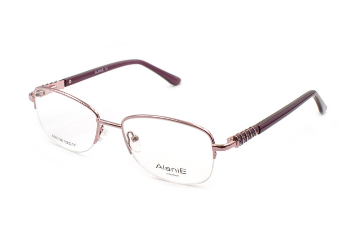 Аккуратная небольшая оправа Alanie 90138. Alanie 90138 полуоправного типа выполнена из качественного металла. Надежные составляющие оправы. Дужки с пластиковыми заушниками с креплением на флексах, которые улучшают носку очков и продлевают службу оправи. Так же плюсом является наличие регулируемых силиконовых носовых упоров. Представлены в нескольких цветах: