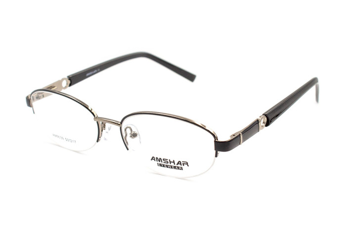 Аккуратная небольшая оправа Amshar 9039.  Amshar 9039 полуоправного типа выполнена из качественного металла. Надежные составляющие оправы. Дужки с пластиковыми заушниками с креплением на флексах, которые комфортно садятся на любую форму лица и продлевают службу оправи. Так же плюсом является наличие регулируемых силиконовых носовых упоров. Представлены в нескольких цветах: